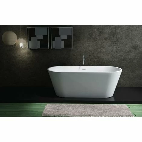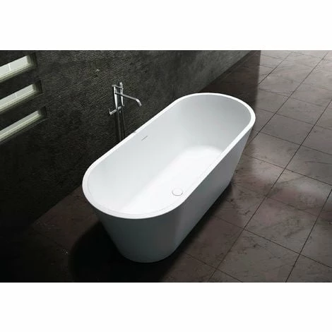 Baignoire monobloc en pierre solide, blanc mat, avec pop up, système d’évacuation et de trop plein