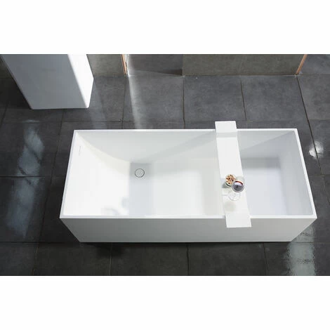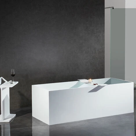 BERNSTEIN Baignoire îlot En Pierre Solide (Solid Surface) LUNA Blanc Mat + Bonde Pop Up 170x72cm – Robinetterie En Option: Sans Robinet Mitigeur, Sans Siphon