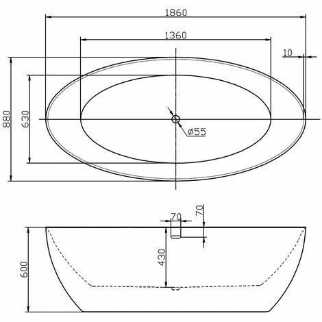 BERNSTEIN Baignoire îlot TERRA En Acrylique Sanitaire Blanc Mat – 186 X 88 X 60 Cm – Robinetterie En Option: Sans Robinet Mitigeur, Sans Siphon