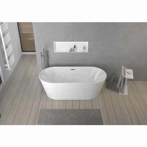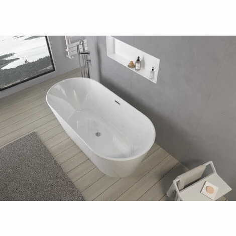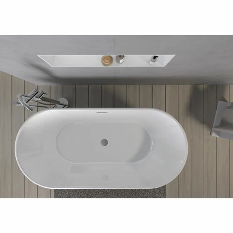 Baignoire ovale VERA 2.0 en acrylique blanc brillant – 170 x 80 x 61 cm