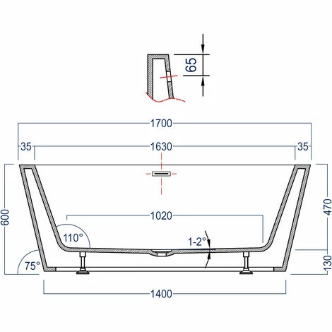 Baignoire monobloc en acrylique sanitaire et fibre de verre renforcé de haute qualité.