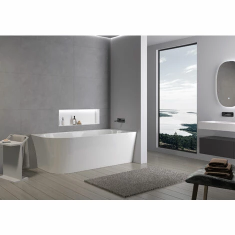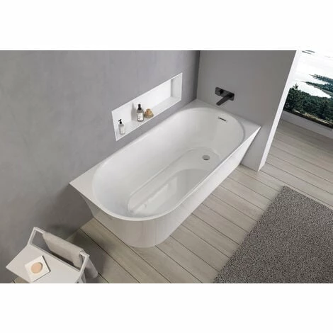 - Baignoire murale en acrylique sanitaire blanc brillant NORA CORNER