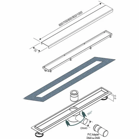Le caniveau de douche avec système d’évacuation de 40mm est livré avec un adapteur de 50 mm. Découvrez dans notre boutique en ligne notre large gamme de douches selon vos préférences peronnelles