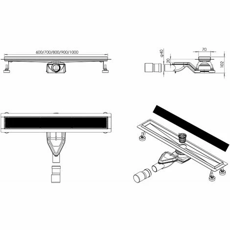 | Matière | caniveau de douche en acier inox SUS304 grille en verre de sécurité ESG, noir siphon en plastique dur et robuste |