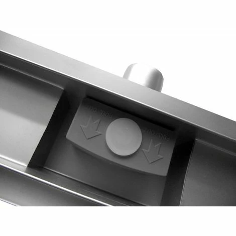 Le système d’évacuation par gille amovible, simplifie le nettoyage du siphon et du caniveau de sol. La conception extrêmement plate du caniveau de sol permet une intégration parfaite dans le sol de la salle de bain. L’eau s’écoule aisément par une petite fente d’évacuation sur le bord du caniveau. Avec ce système d’évacuation en acier inoxydable, les possibilités de conceptions architecturales de la salle de bain deviennent illimitées.