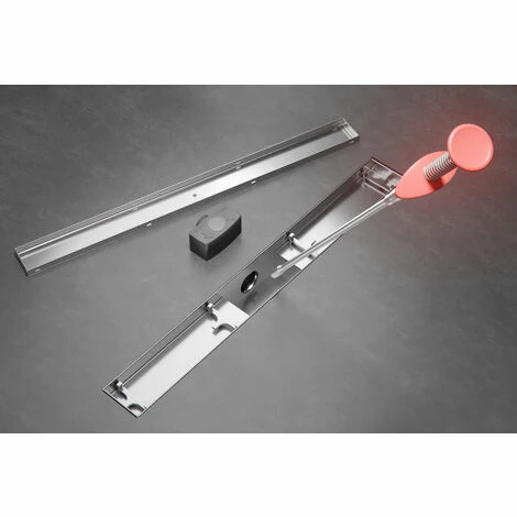 Grâce au pieds de montage réglables, vous pouvez sans aucun problèmes ajuster la hauteur. Le caniveau de sol pour douche plain-pied a un système d’évacuation de 40mm de diamètre et est livré également avec un adapteur de 50mm.