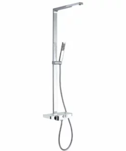 Savourez le plaisir de prendre une douche avec le système de douche NT7385 de la marque BERNSTEIN. Avec la conception particulière de cette colonne de douche, vous pouvez utiliser la surface en verre du thermostat comme espace de stockage pour vos produits de douche.
