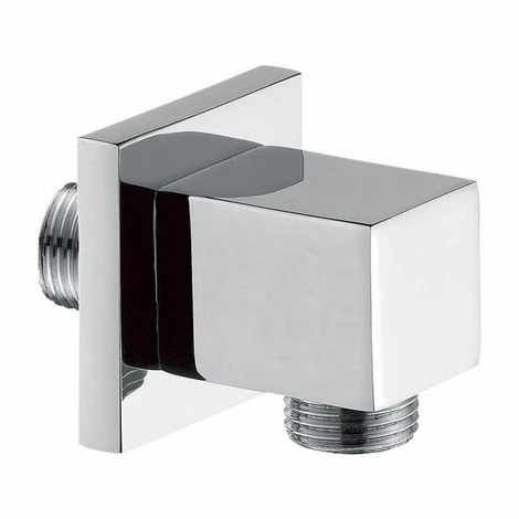 Notre coude de raccordement pour flexible de douchette deforme carrée en laiton chromé, est muni d’unclapet anti-retour. Le coude mural est conforme à la normeDIN-raccord 1/2″ et donc adapté à tous lesflexibles de douche standard.