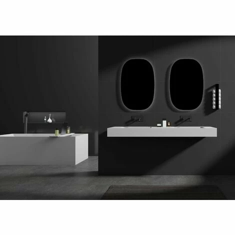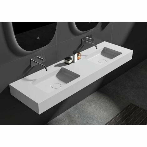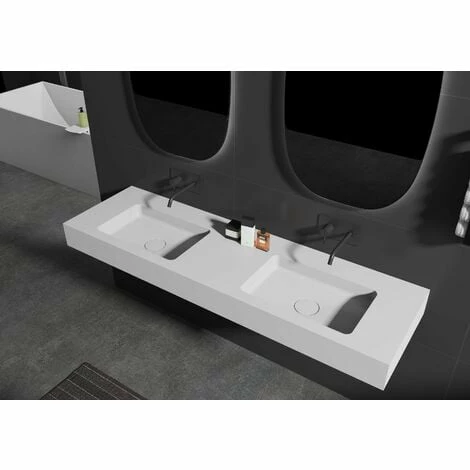 - Double vasque en pierre solide/Solid Surface BA8015 selon la version sélectionnée
