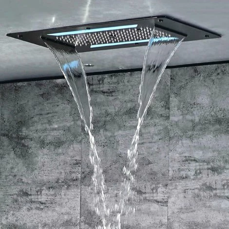 Douche de tête noire grand design pour une installation encastrée en acier inoxydable de haute qualité.