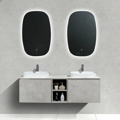 Les deux vasques illustées INALCO, ainsi que les deux sous vasques avec un élément central complètent le mobiler de salle de bain. Pour cet ensemble, vous pouvez commander en option deux miroirs lumineux LED de votre choix. Découvrez également notre assortiment de robinets dans notre boutique en ligne.