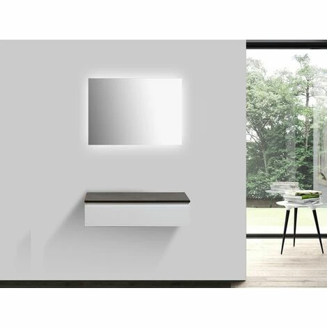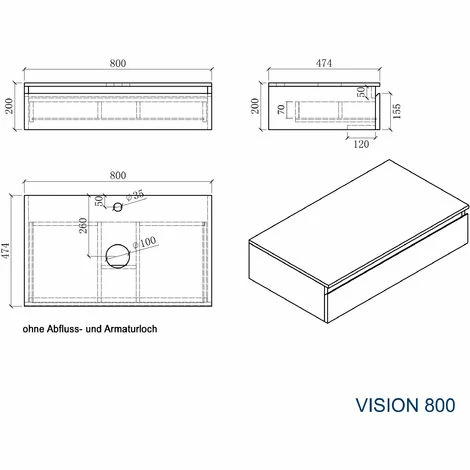Embellissez votre salle de bain avec notre nouvel ensemble Vision 800. La qualité de finition haut de gamme et la combinaison du meuble sous vasque en blanc avec le plan vasque de couleur marron apporte une touche moderne et élégante à votre salle de bain. Pour prendre vos produits cosmétiques et accessoires de bain, le tiroir est placé à une hauteur agráble.