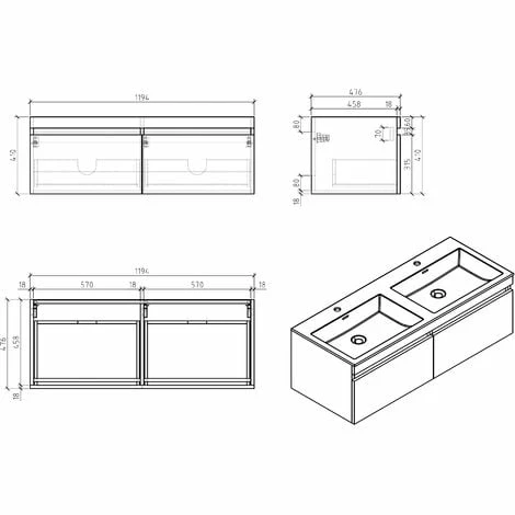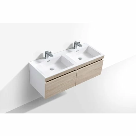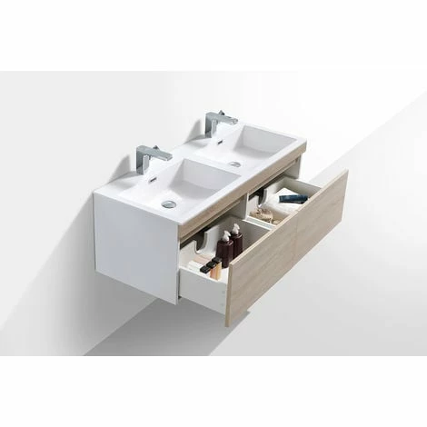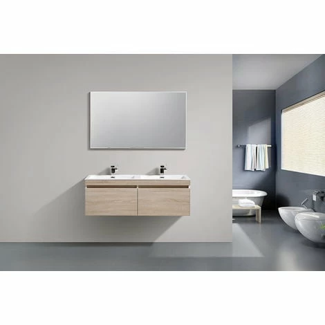 BERNSTEIN Ensemble Salle De Bain Easy 1200 Blanc – Façade Couleur Chêne Clair – En Option Miroir, Armoire De Toilette Et Meuble Mural: Sans Miroir, Sans Meuble Mural