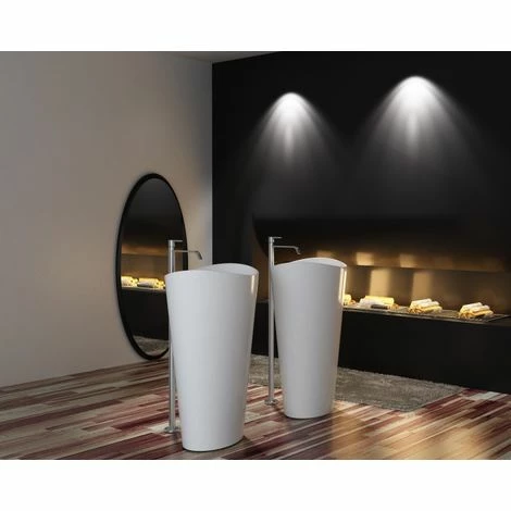 Mettez du luxe dans votre salle de bain avec cette vasque totem en résine polyester (Solid Stone).