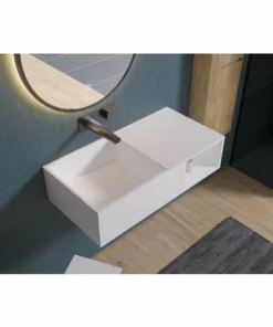 Le lavabo en blanc mat est massif, non poreux, 100% Ă©tanche, rĂ©sistant Ă l’humiditĂ© et facile Ă nettoyer.