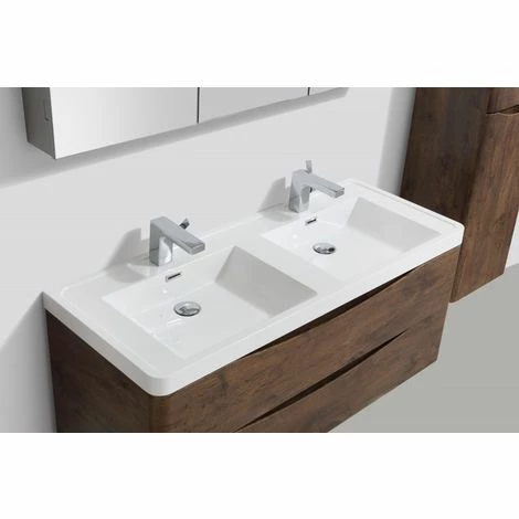 La double vasque en marbre artificiel de haute qualité, élégante et facile à nettoyer est pré-préparée pour 1 trou de chaque côté, livrée avec bonde mais sans robinetterie.