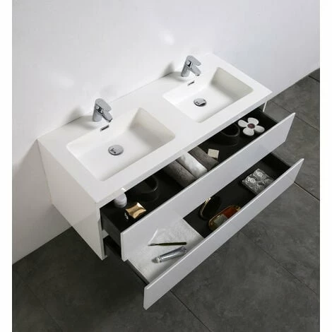 BERNSTEIN Meuble De Salle De Bain Alice 1200 – En Blanc Brillant – Miroir Et Colonne De Rangement En Option: Sans Miroir, Sans Meuble Mural, Brillant