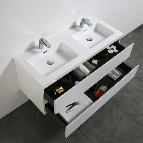 BERNSTEIN Meuble De Salle De Bain Alice 1200 – En Blanc Mat – Miroir Et Colonne De Rangement En Option: Sans Miroir, Sans Meuble Mural, Brillant