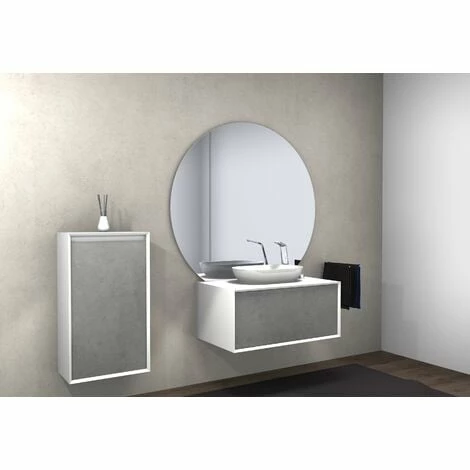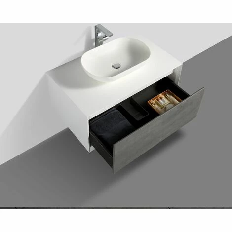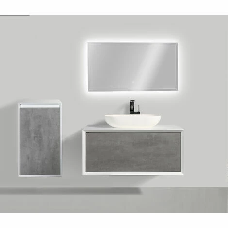 BERNSTEIN Meuble De Salle De Bain Fiona 900 – Façade Effet Béton Ou Chêne – Miroir Et Colonne De Rangement En Option: Sans Miroir, Sans Meuble Mural, Sans Cache Supplémentaire, Sans Vasque à Poser, Aspect Béton