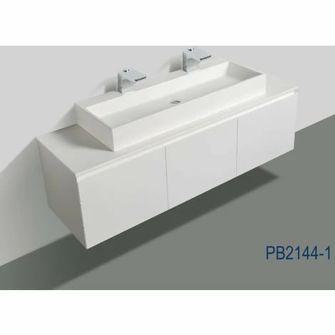 Sur le meuble engris mat, se trouve un plan vasque en pierre de synthèse, Solid Stone de qualité supérieure. Les trous pour la robinetterie et l’écoulement ne sont pas pré-percés. Vous avez ainsi le choix entre un robinet à encaster ou à poser. Découvrez un large choix de robinets assortis au meuble Luna 1600 dans notre boutique en ligne. Les vasques PB2144-1 et TWG07 ne font pas partie de la livraison mais peuvent être commandées en option.