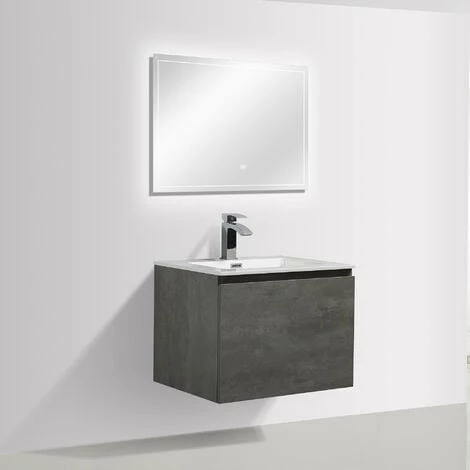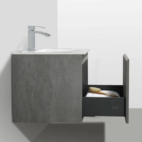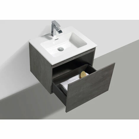 BERNSTEIN Meuble Salle De Bain Alice 600 Gris Effet Béton – Miroir En Option: Sans Miroir