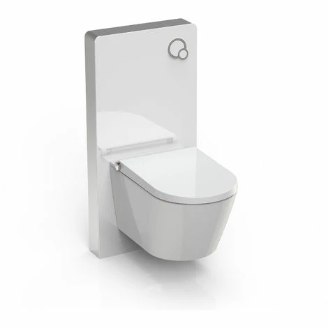 Le cadre est en aluminium de haute qualité et la plaque frontale en verre trempé (ESG) de 8mm d’épaisseur. Le réservoir intégré avec touche de rinçage complet ou partiel et volume d’eau réglable est isolé contre l’eau de condensation.