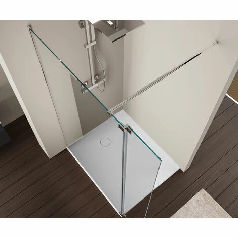 - Paroi de douche NT109 avec volet amovible en verre, profilé mural et barre de stabilisation