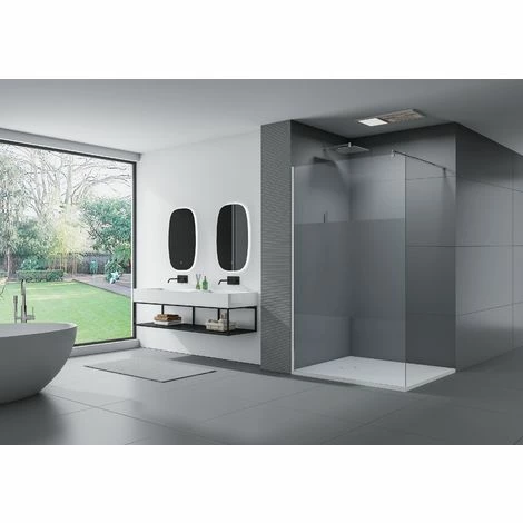 La paroi peut-être fixée librement à un mur ou utilisée comme douche en coin.