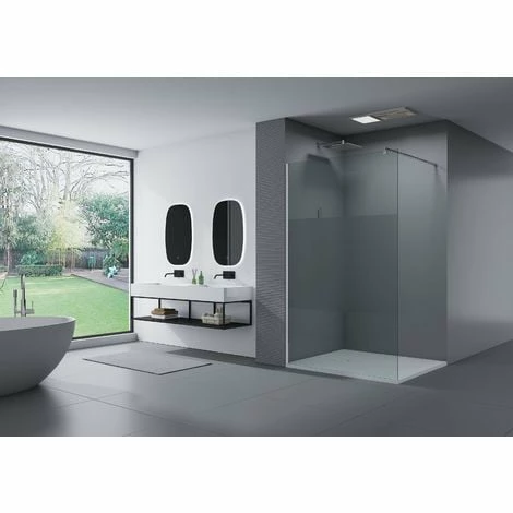 Paroi de douche fixe latérale Walk-In, en verre véritable NANO, satiné partiel EX101