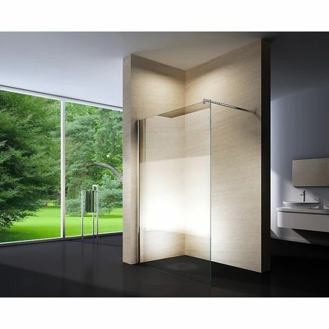 La paroi peut-être fixée librement à un mur ou utilisée comme douche en coin.