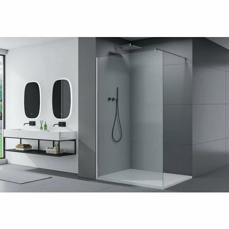 La paroi est en verre de sécurité de 10mm ! avec effet nano, easy to clean, facile d’entretien.