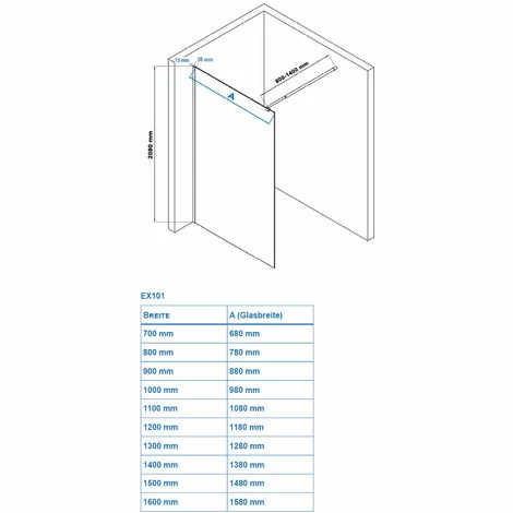 La paroi peut-être fixée librement à un mur ou utilisée comme douche en coin.