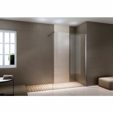 La paroi peut-être fixée librement à un mur ou utilisée comme douche en coin.