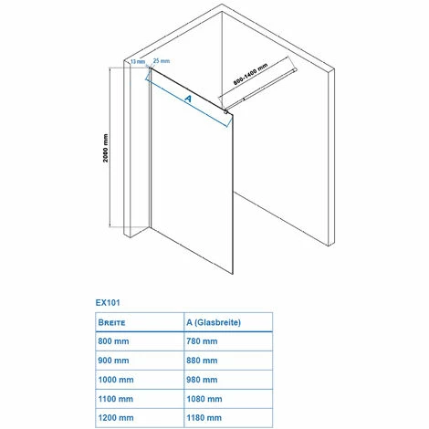 Paroi de douche fixe latérale Walk-In en verre véritable NANO, clair/transparent EX101