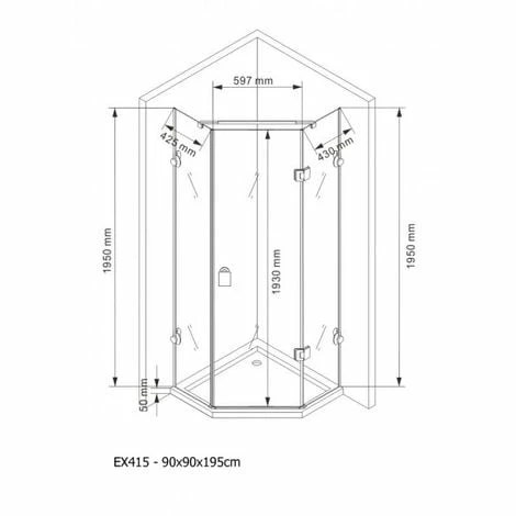 Paroi de douche pentagonale EX415 NANO avec receveur – douche en verre sans cadre