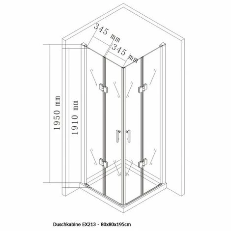 Paroi de douche pliante, accès d´angle, verre véritable NANO EX213 – 80 x 80 x 195 cm