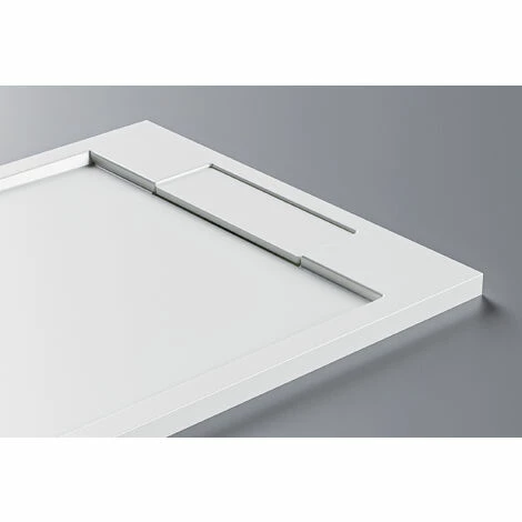 Bac à douche avec vidage par écoulement gravitaire. Au dessus de l´orifice d´évacuation se trouve un couvercle de protection amovible de la même matière que le receveur. Bac et protection forment ainsi un ensemble agréable.