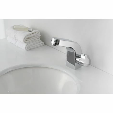 Le mitigeur est en laiton massif chrome et sera un véritable accroche-regard dans votre salle de bain. Le design de la poignée s’inspire de la forme d’une goutte d’eau. La cartouche intégrée permet un réglage de température très court.