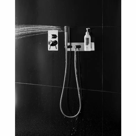 Le raccord de tuyau et le support pour la douchette sont en laiton et peuvent ĂŞtre montĂ©s sur le mur Ă droite ou Ă gauche. Un flexible en acier inoxydable et une douchette Ă main en ABS avec buses anticalcaires sont compris dans l’offre.