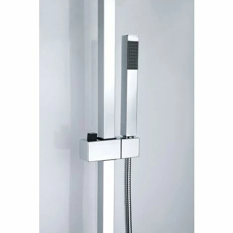 La douchette, en ABS chromé, est réglable en hauteur et en inclinaison.