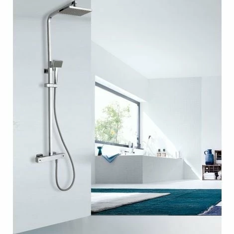 Elégante colonne de douche de la marque BERNSTEIN avec thermostat, adaptée à nos parois de douche.Renoncez aux changements de température et réglages en permanence, votre nouveau système de douche avec thermostat s’en charge désormais.