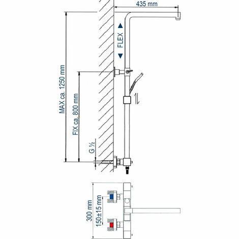 | barre de douche réglable en hauteur (voir le schéma) min. 84 cm – max. 125 cm | |