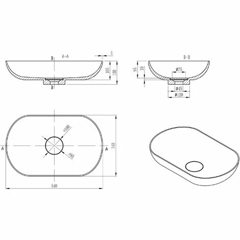 Vasque en fonte minérale O-541 avec soupape d’évacuation