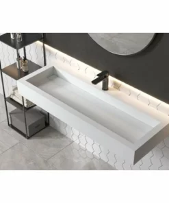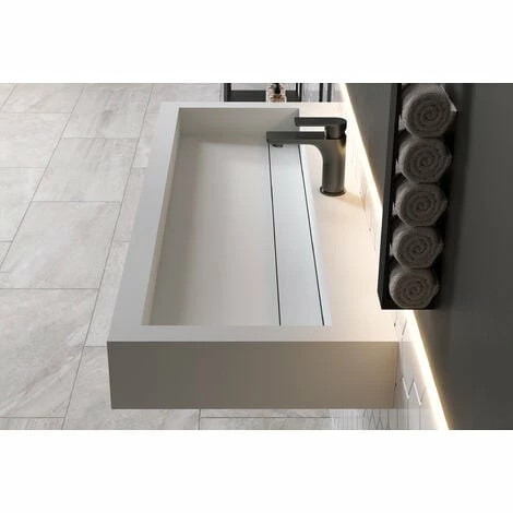 La surface est lisse et non poreuse et de ce fait facile à nettoyer et extrêmement hygiénique. Son design intemporel est simple et élégant, la couleur résistante ne jaunit pas. Pour l’installation contre le mur, les trois trous derrière la vasque et le matériel de montage fourni facilitent l´installation.