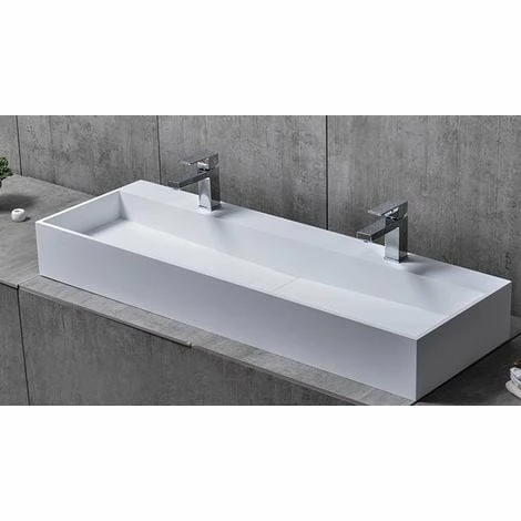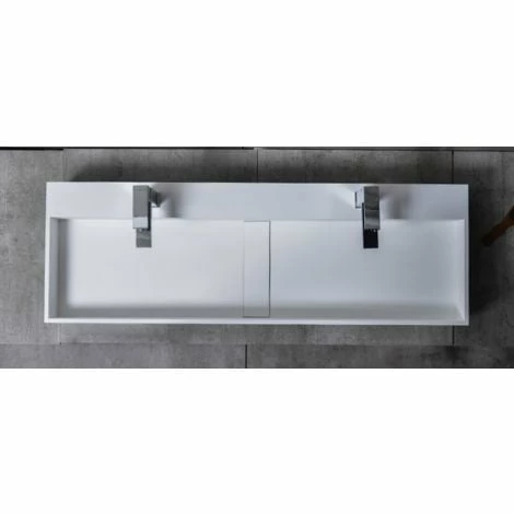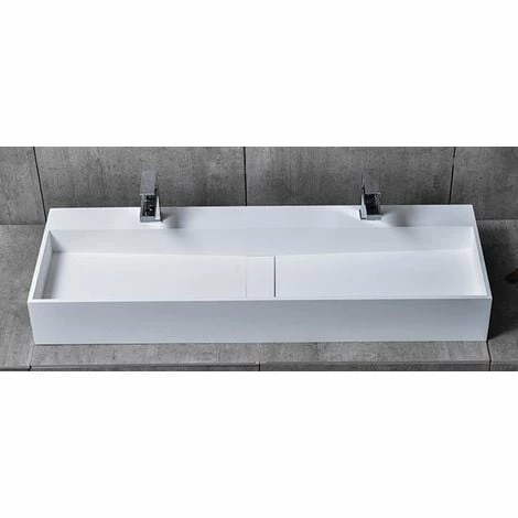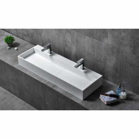 Vasque murale ou à poser en fonte minérale TWG07 – 120 x 40 x 15 cm – blanc mat