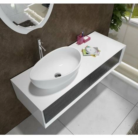 À poser sur un plan ou sur un meuble de salle de bain adapté.