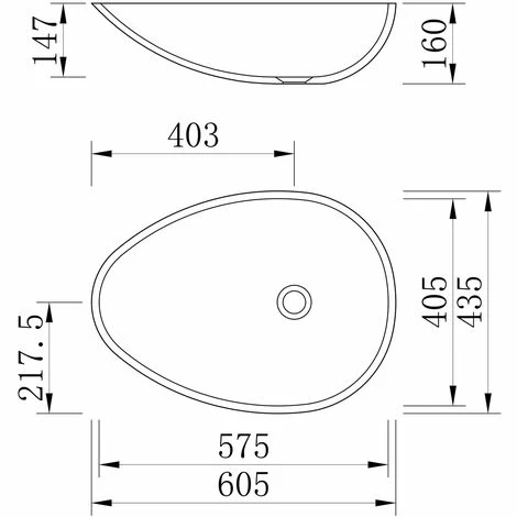 Vasque à poser VELA en fonte minérale/pure acrylic – 60,5 x 43,5 x 16 cm