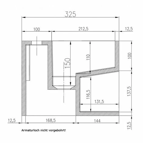 | Sans trou pré- percé Convient à toutes les robinetteries | |