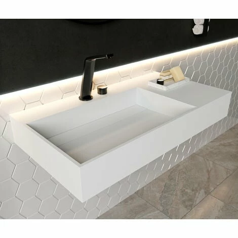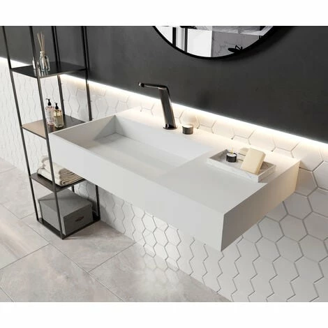 Mettez du luxe dans votre salle de bain avec ce lavabo /vasque à suspendre en résine polyester (Solid Stone).