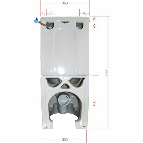 Avec une profondeur de 71 cm, une largeur de 36 cm et une hauteur de 85 cm, le WC monobloc est très compact et donc conçu pour être monté dans toutes les salles de bains.